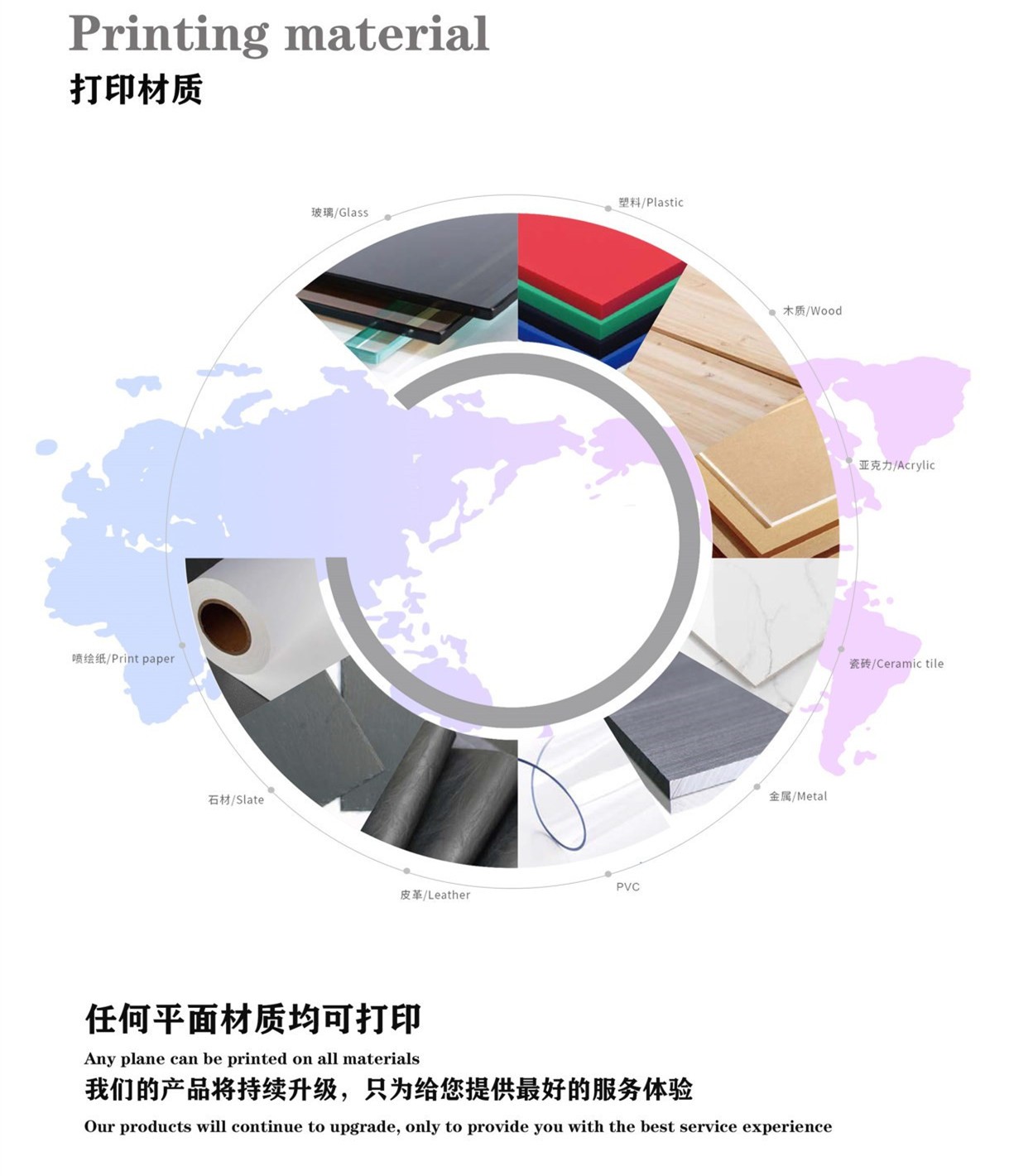 UV打印機是無需制版、曬版、重復套色的繁雜步驟,只需把圖片放到電腦,連接打印軟件,一位操作人員就可以獨立的進行印刷工作,印刷速度快,操作便捷的智能數碼印刷機。世通UV打印機的應用的范圍很廣,比較典型的有廣告行業的標識標牌、展覽道具、室內室外廣告等;家居建筑行業的裝飾玻璃、移門柜櫥、地板貼、背景墻等;3C電子電器行業的家用電板、薄膜開關、個性彩殼;禮品包裝行業的禮品定制、文具玩具、禮盒包裝等。世通UV打印機能應用的領域特別廣泛,除了上述的幾個之外,還有很多,只要是平面的,大部分都是可以進行打印噴繪。
